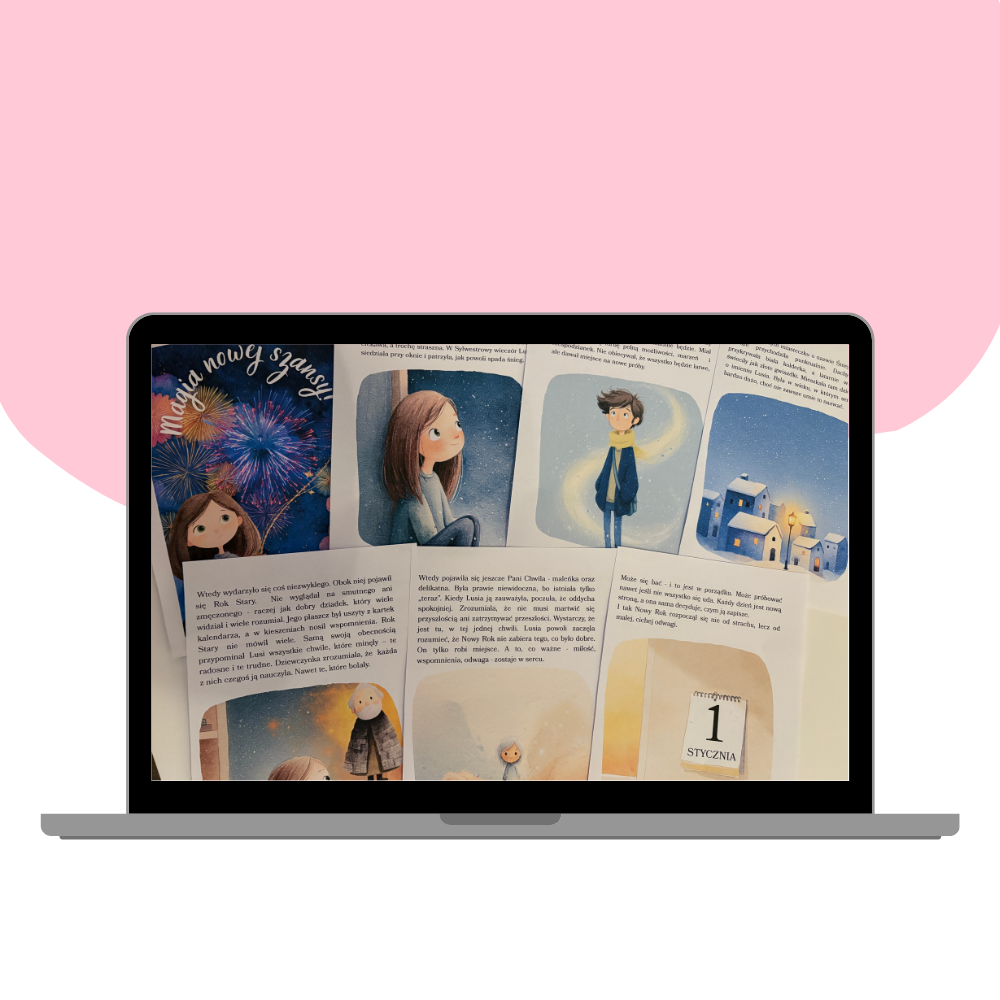Bajka terapeutyczna na Sylwestra to kompletny zestaw zajęć noworocznych, który w bezpieczny i delikatny sposób pomaga dzieciom pożegnać stary rok oraz z nadzieją i spokojem powitać nowy. Historia porusza temat zmian, emocji i nowych początków, wspierając dzieci w oswajaniu lęków oraz wzmacnianiu poczucia bezpieczeństwa. Bajka została napisana z myślą o pracy wychowawczej i terapeutycznej – idealnie sprawdzi się w przedszkolu oraz edukacji wczesnoszkolnej, jako baza do rozmów, refleksji i aktywności wspierających rozwój emocjonalny dzieci.