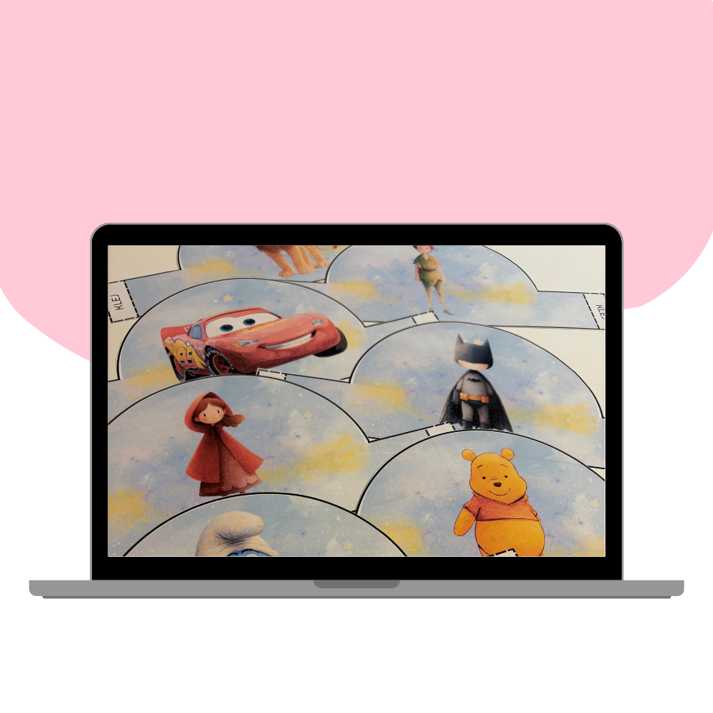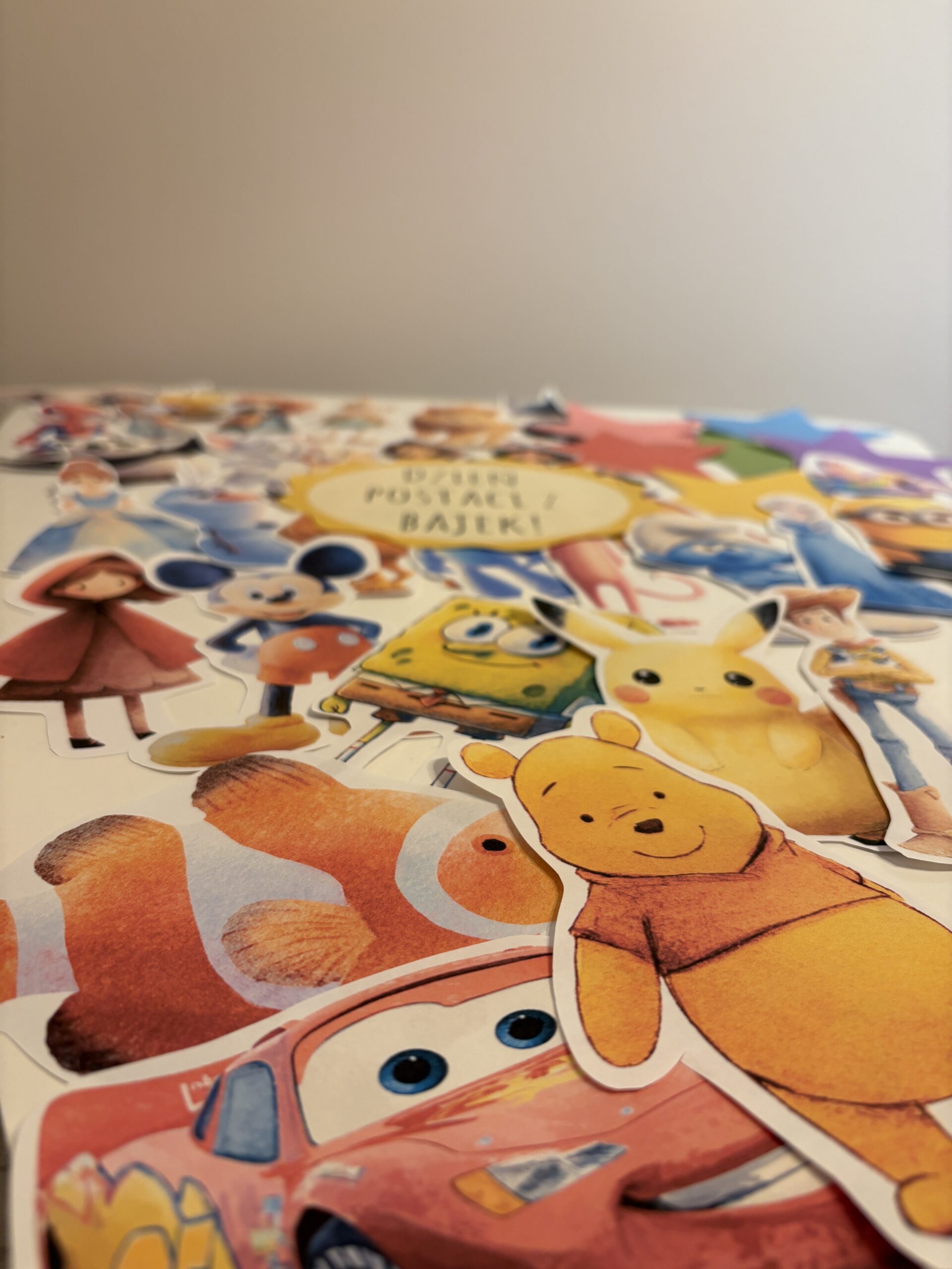-30 znanych i lubianych bohaterów bajek (m.in. Elsa, Olaf, Kubuś Puchatek, Spiderman, Vaiana, Minionek, Smerf, Scooby Doo i wielu innych),