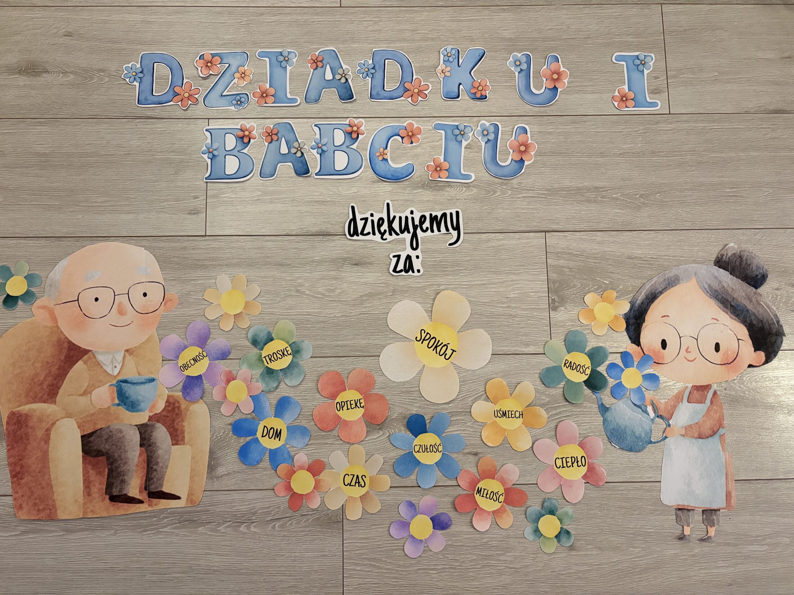 -dekoracyjne napisy (np. „Dziadku i Babciu”, „dziękujemy za:”)