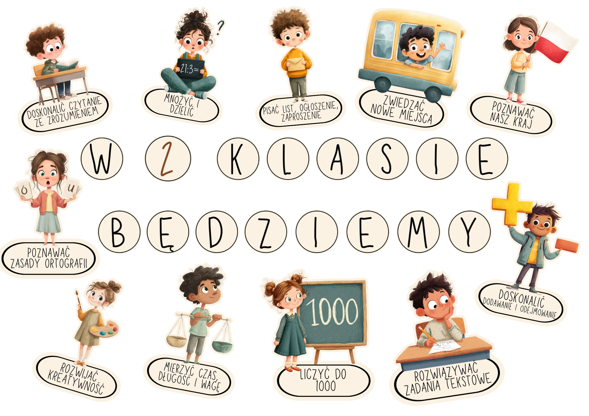 1. Napis “W 2 klasie będziemy:”