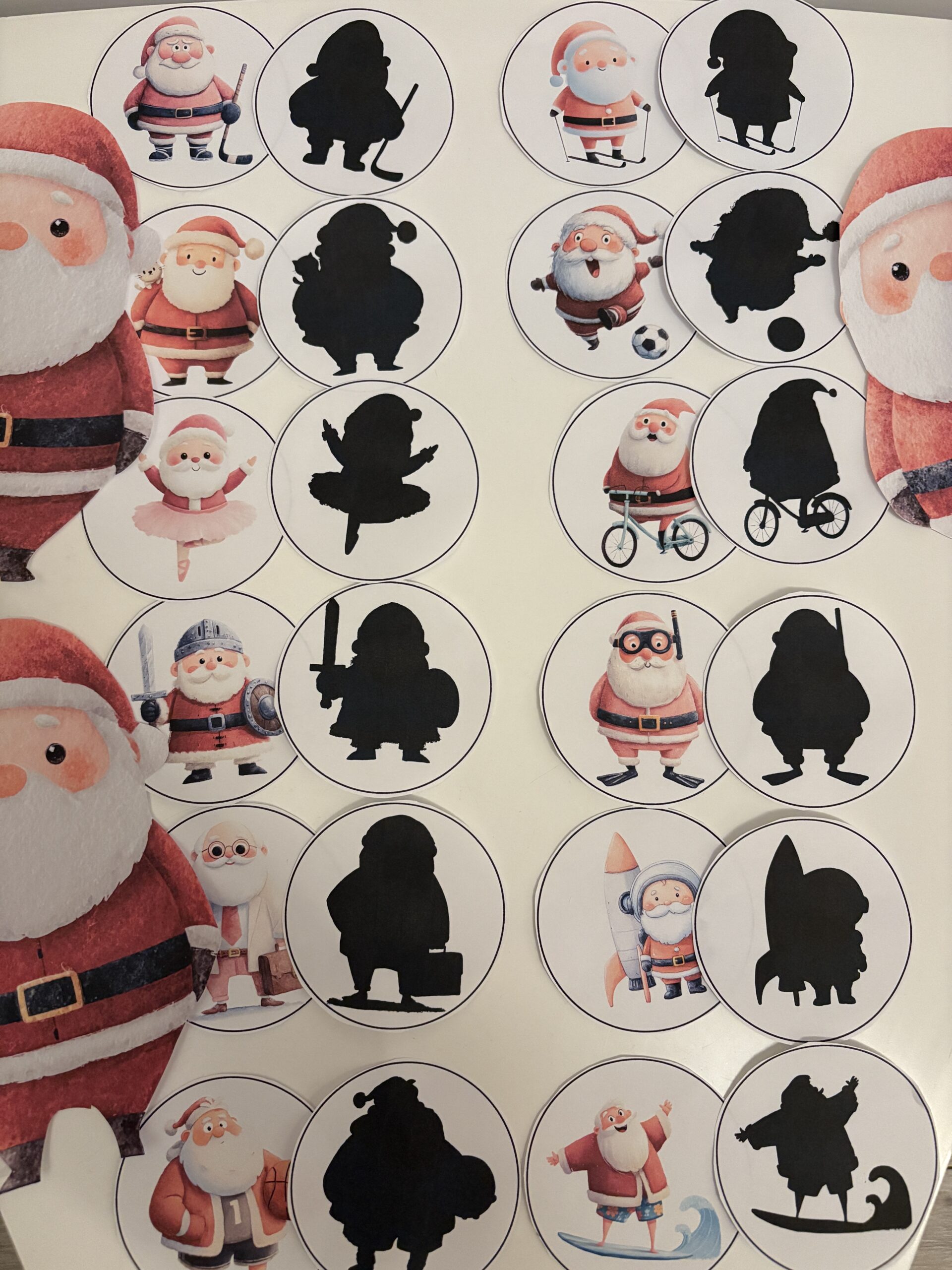 Zestaw 30 wzorów-dopasuj obrazek do cienia. Świąteczna zabawa, która rozwija spostrzegawczość, koncentrację i logiczne myślenie!