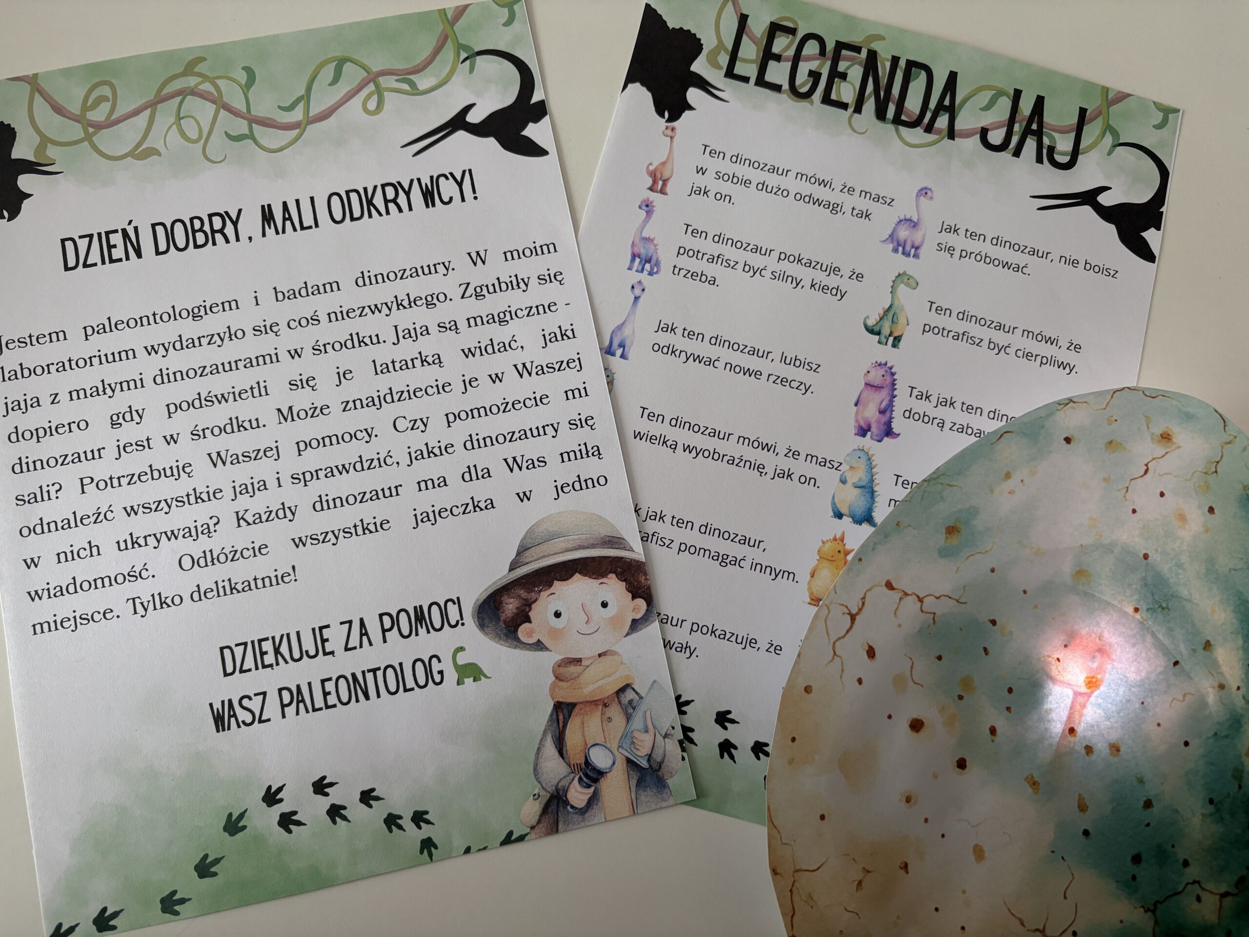 -kartę zakończenia zabawy z podziękowaniem od paleontologa