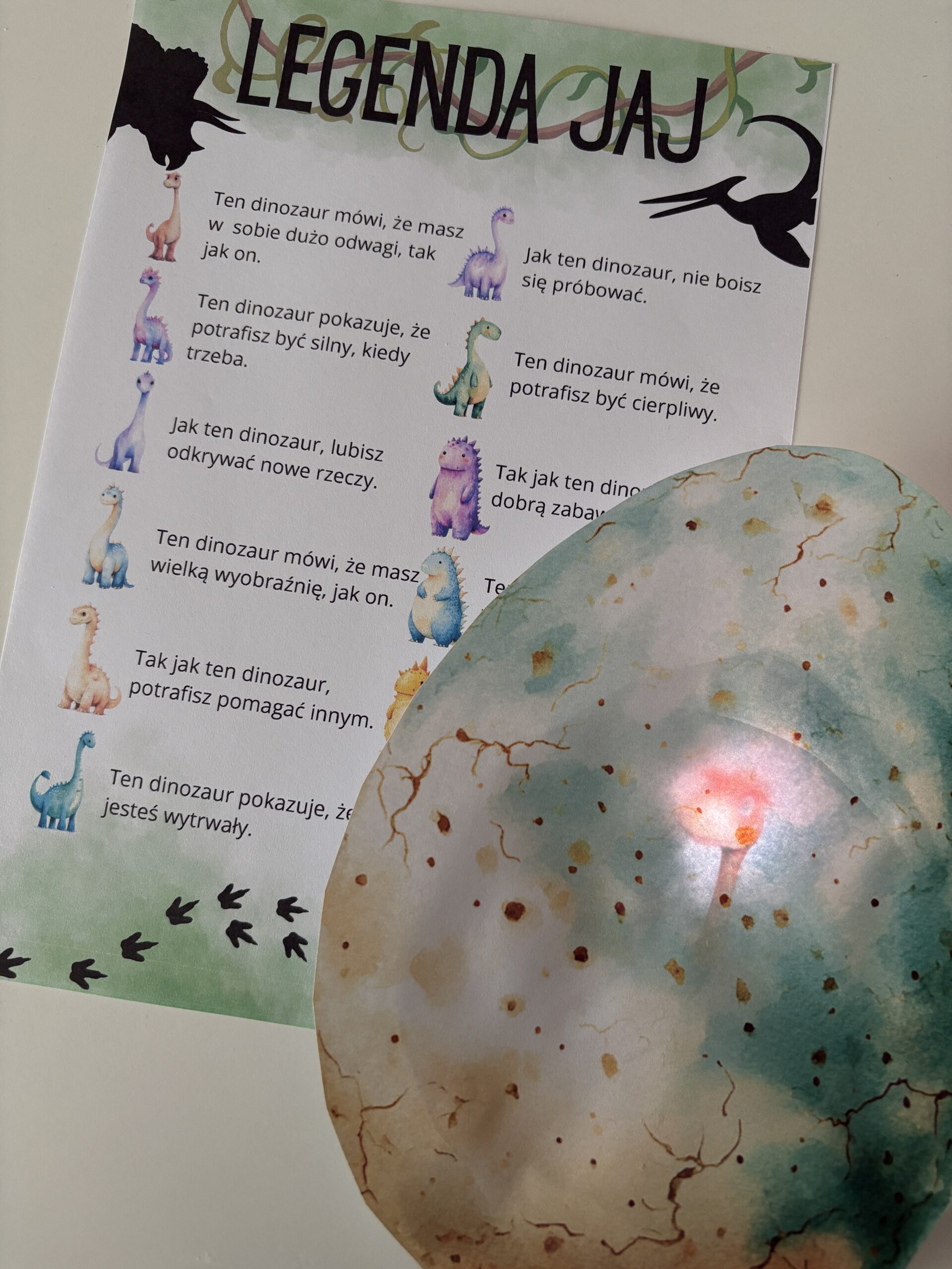 Gra oparta jest na liście wprowadzającym oraz zadaniu odnalezienia i dopasowania dinozaurów do jaj. To doskonała propozycja na Dzień Dinozaura, zajęcia tematyczne, zabawy grupowe oraz aktywności rozwijające wyobraźnię i współpracę.