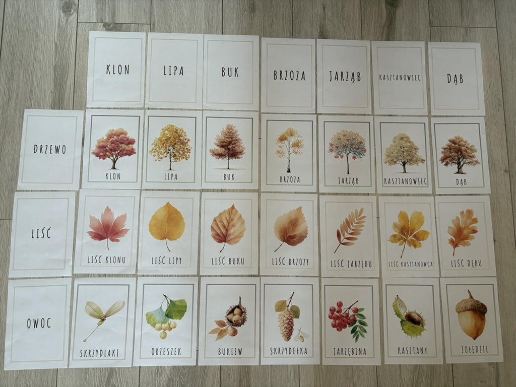 -nazwy drzew (klon, lipa, buk, brzoza, jarząb, kasztanowiec, dąb)