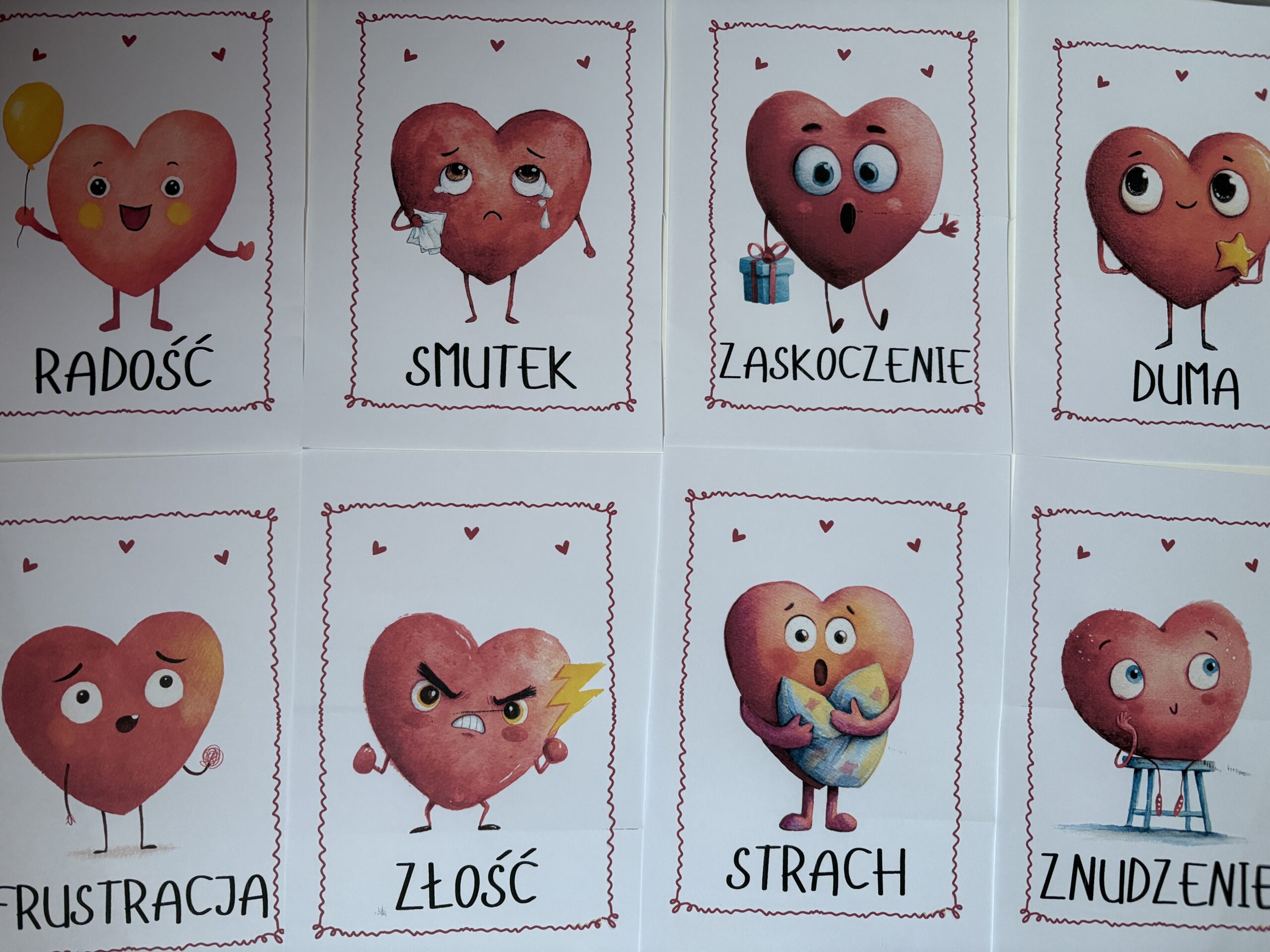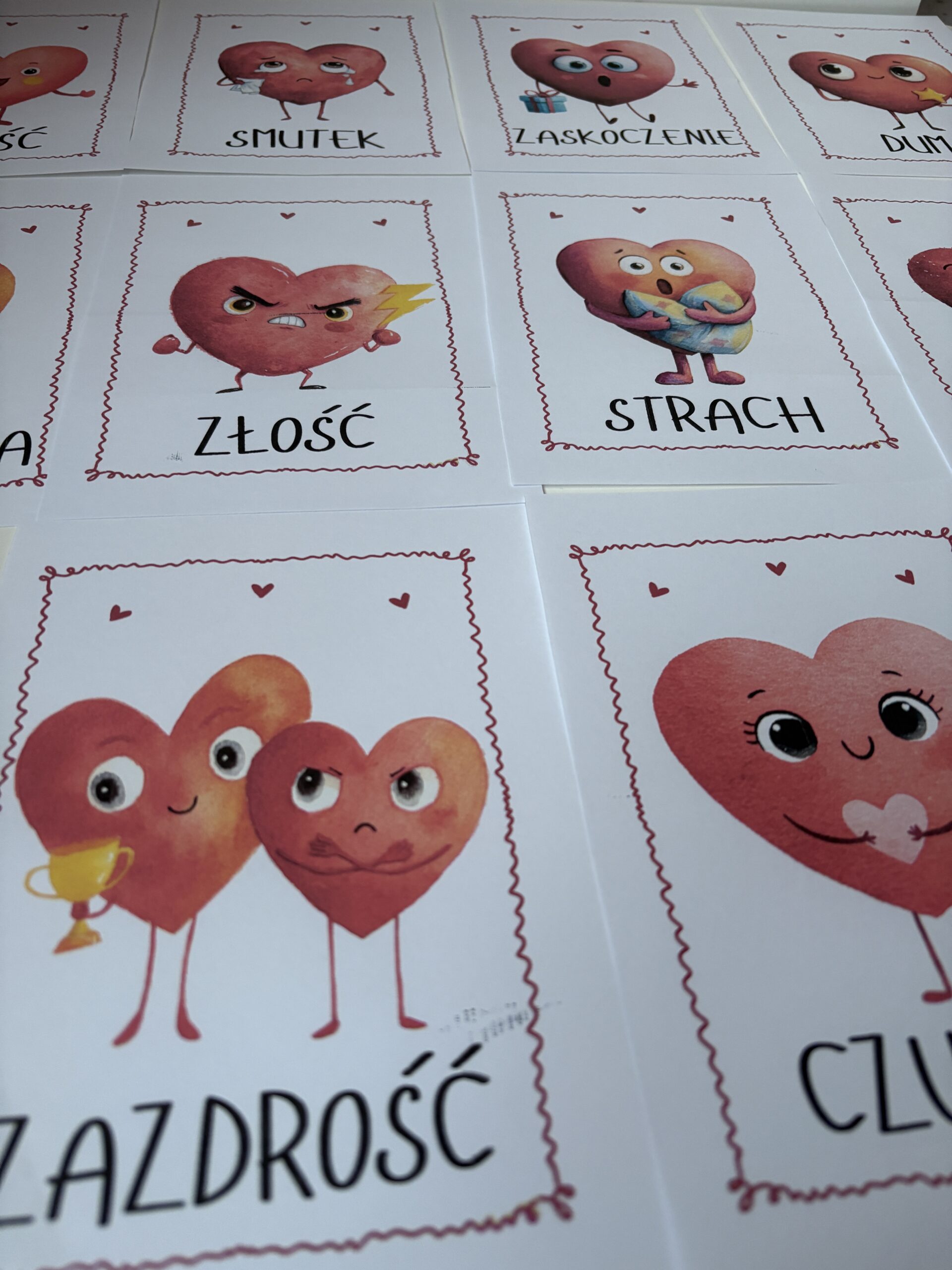 Zestaw walentynkowych kart emocji z uroczymi serduszkami to idealne narzędzie do pracy nad rozpoznawaniem, nazywaniem i omawianiem emocji z dziećmi. Każda karta przedstawia inną emocję w przystępnej, przyjaznej formie graficznej, dzięki czemu doskonale sprawdzi się w przedszkolu, szkole oraz podczas zajęć terapeutycznych.