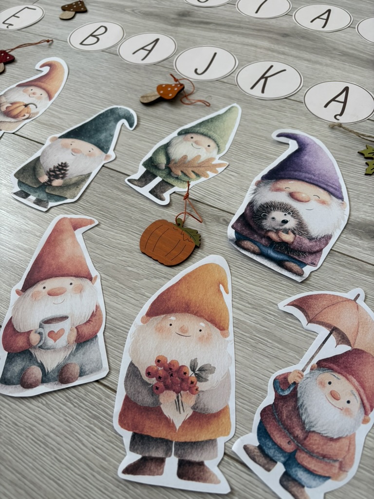 -26 krasnali z różnymi oznakami jesieni