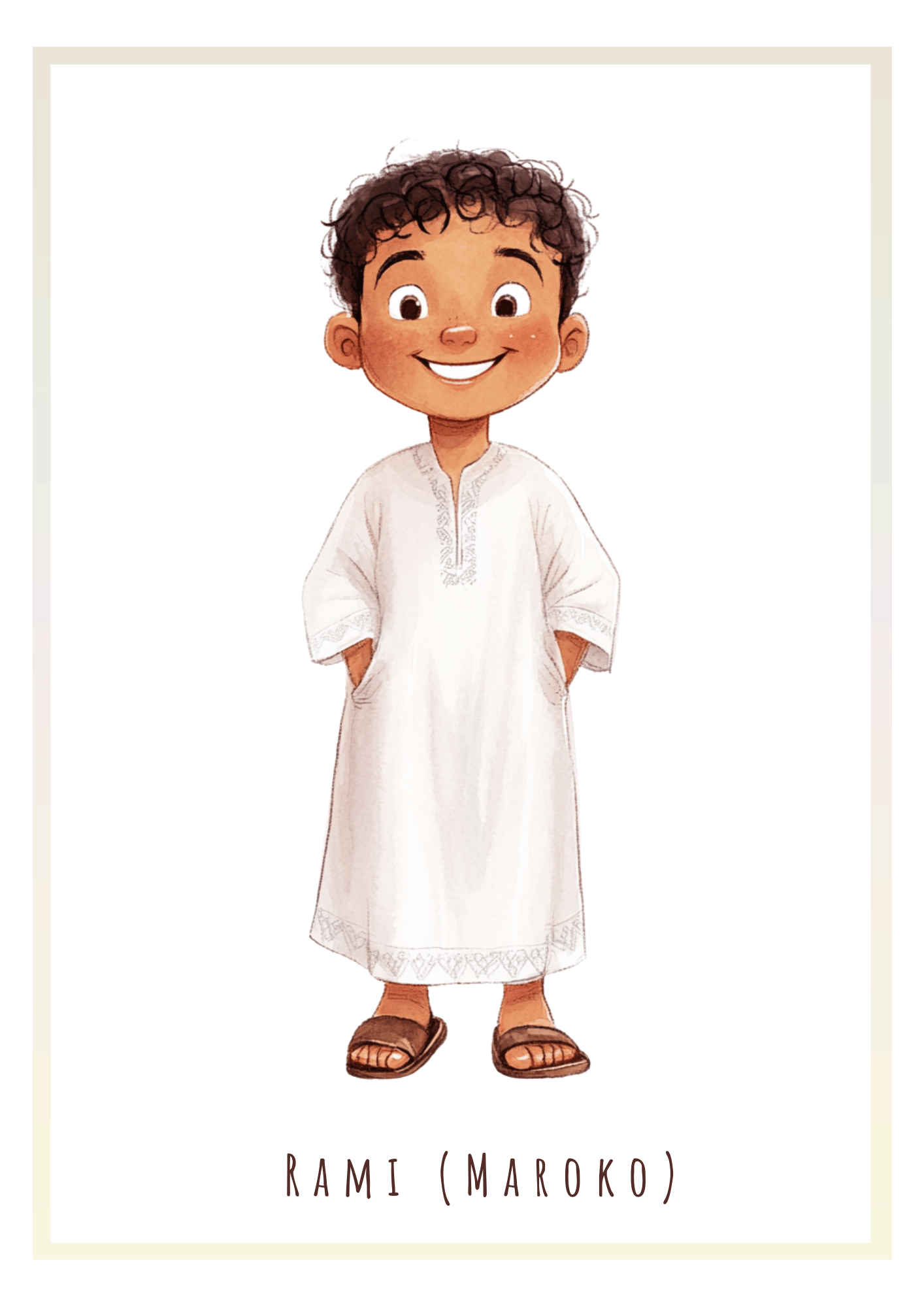 1.Rozłóż planszę z postaciami dzieci z różnych stron świata oraz atrybuty.