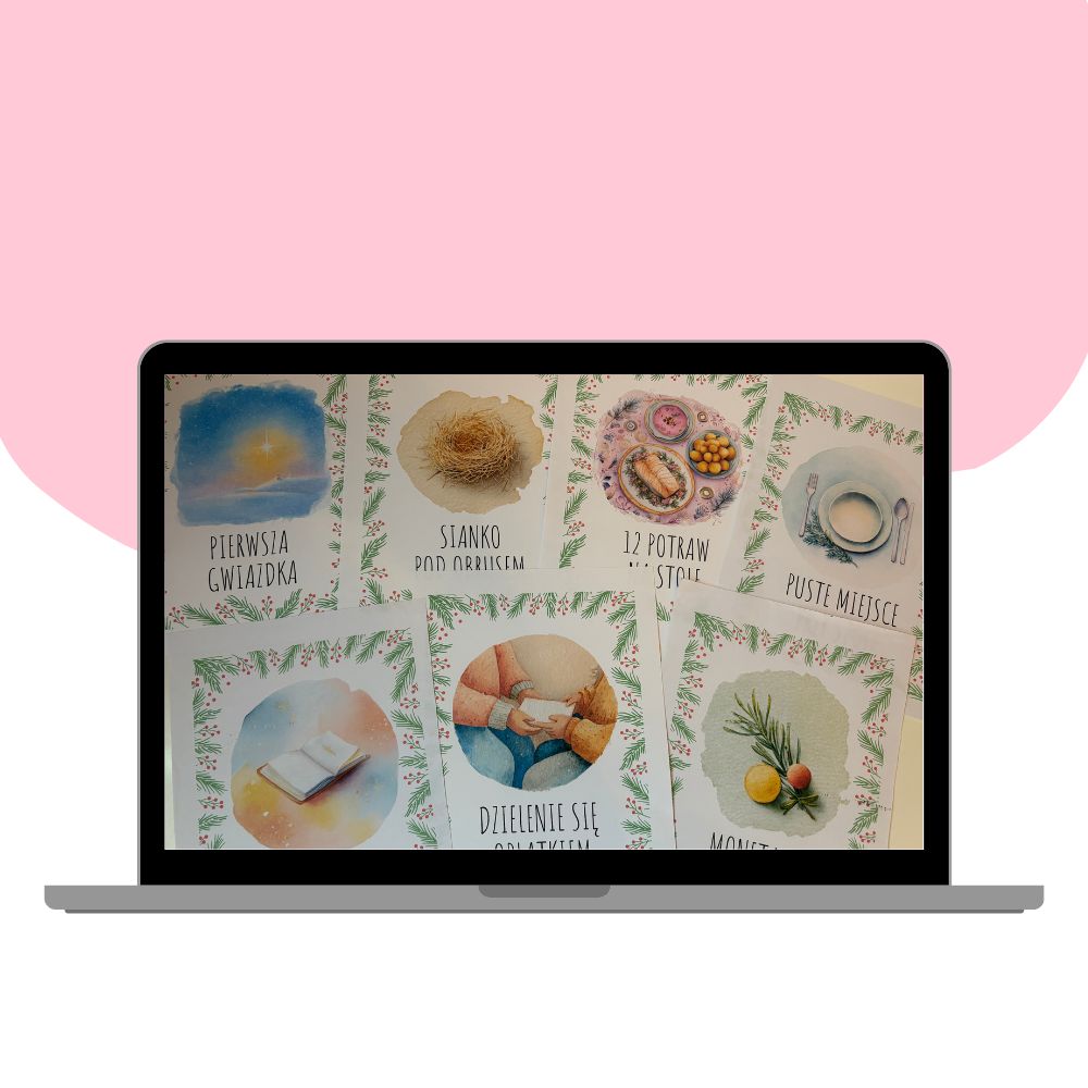 Zestaw 12 estetycznych plansz edukacyjnych przedstawiających najważniejsze polskie tradycje wigilijne. Materiał idealnie sprawdzi się jako pomoc dydaktyczna dla nauczycieli przedszkola, edukacji wczesnoszkolnej oraz katechezy, wprowadzając dzieci w atmosferę Świąt Bożego Narodzenia w sposób spokojny, wartościowy i czytelny.