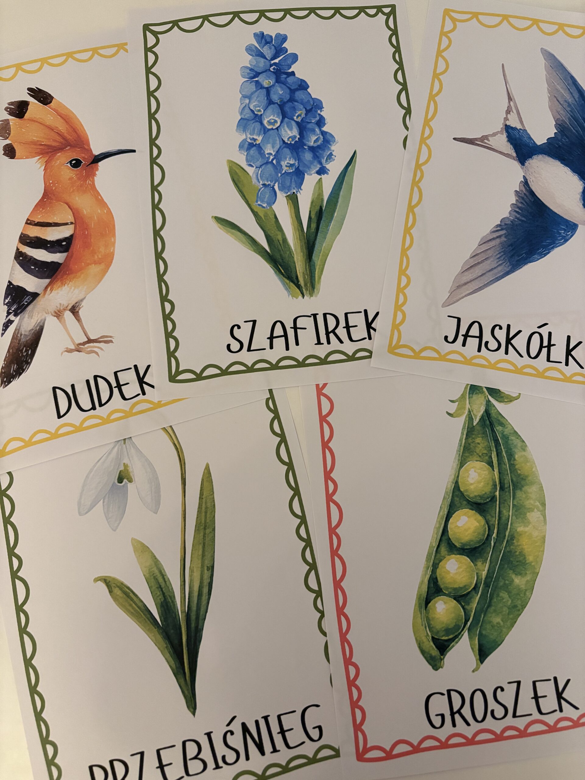 🌸 Plansze dydaktyczne: Wiosna – kwiaty, ptaki, pogoda i warzywa
