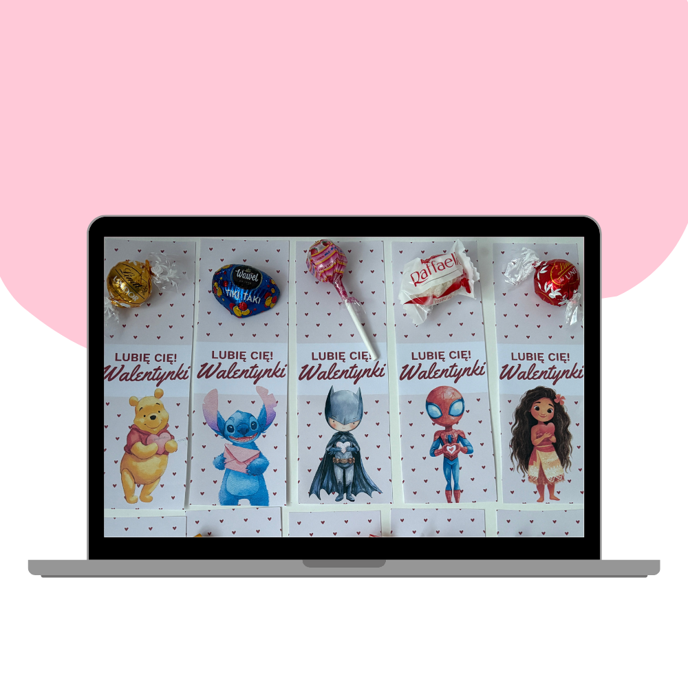 Uroczy zestaw walentynkowych zakładek z bohaterami bajek to idealny pomysł na drobny upominek dla dzieci z okazji Walentynek. ❤️ Świetnie sprawdzą się jako prezent klasowy, dodatek do książki, słodyczy lub małego walentynkowego upominku. Każda zakładka zawiera walentynkowy napis „Lubię Cię! Walentynki” oraz postać znaną i lubianą przez dzieci. 🧸✨ Smukły format sprawia, że zakładki są wygodne w użyciu i idealnie mieszczą się w książkach oraz zeszytach.